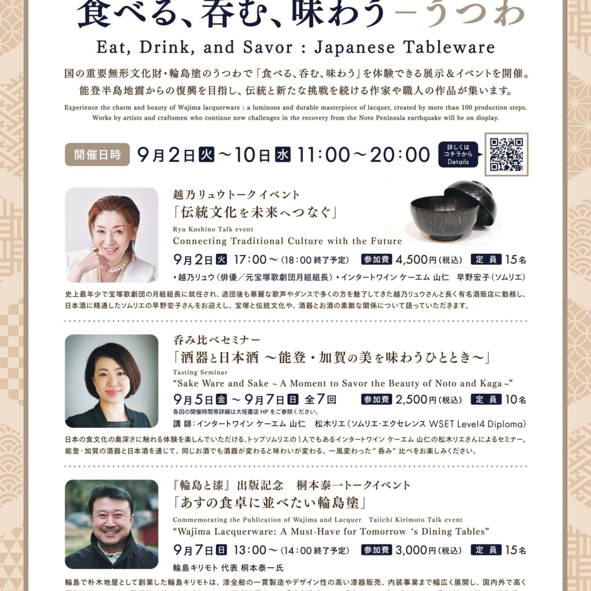 「食べる、呑む、味わうーうつわ」国の重要無形文化財・輪島塗のうつわで「食べる、呑む、味わう」を体験いただける展示&イベントを開催。 https://www.books-ogaki.co.jp/post/62485 そのオープニングイベントに出演いたします。越乃リュウトークイベント「伝統文化を未来へつなぐ」宝塚と伝統文化や、酒器とお酒の素敵な関係について語るトークショーです。 ■開催日時:9 […]